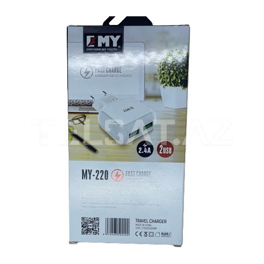 EMY Fast Charger 2USB MY220 ilə cihazlarınızı sürətli və təhlükəsiz bir şəkildə Şarj edin. Sifariş edin və hər yerdə energetik tələbatınıza cavab verin!