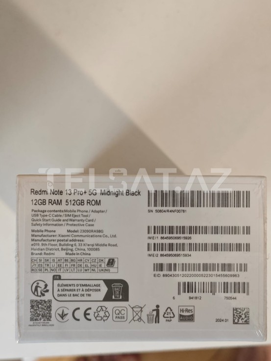 Salam, Xiaomi Redmi Note 13 Pro Plus 12GB/512GB Midnight Black zəmanət verilir. whatsapp var